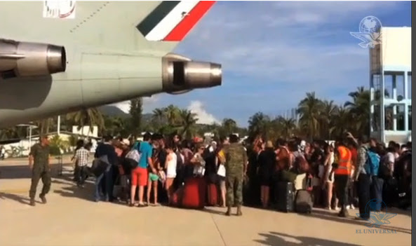 Ad Acapulco, l'esercito - aiutato da compagnie aeree locali - continua a imbarcare sugli aerei turisti bloccati, messicani e stranieri, verso la capitale Città del Messico.
